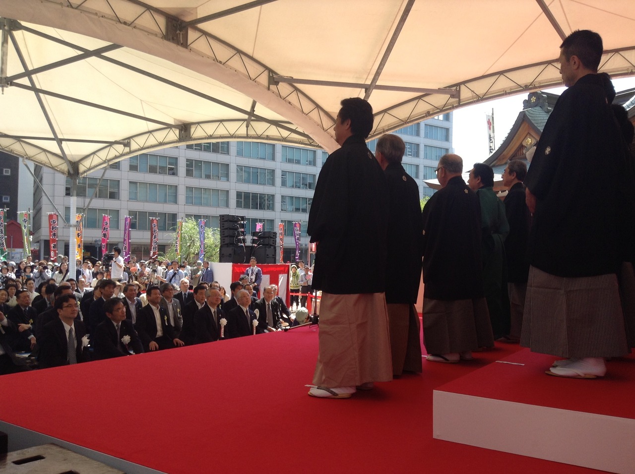 リバレイン前では、オークラとの間にステージが出来て、歌舞伎役者の挨拶が行われます。