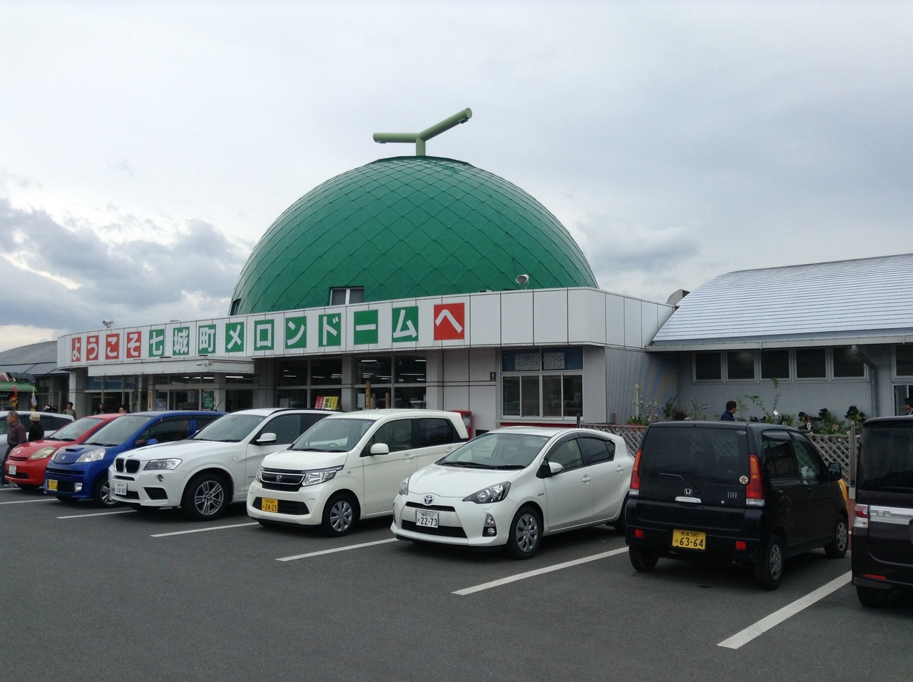 七城町メロンドームは、菊池市にある道の駅です。野菜からお肉まで、産直品が買える人気の道の駅で、かなり混雑していました。