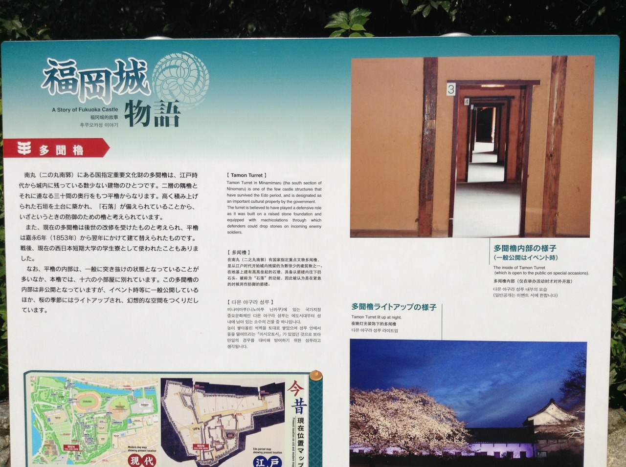 多聞櫓は、福岡城の残る数少ない江戸時代の構造物です。
