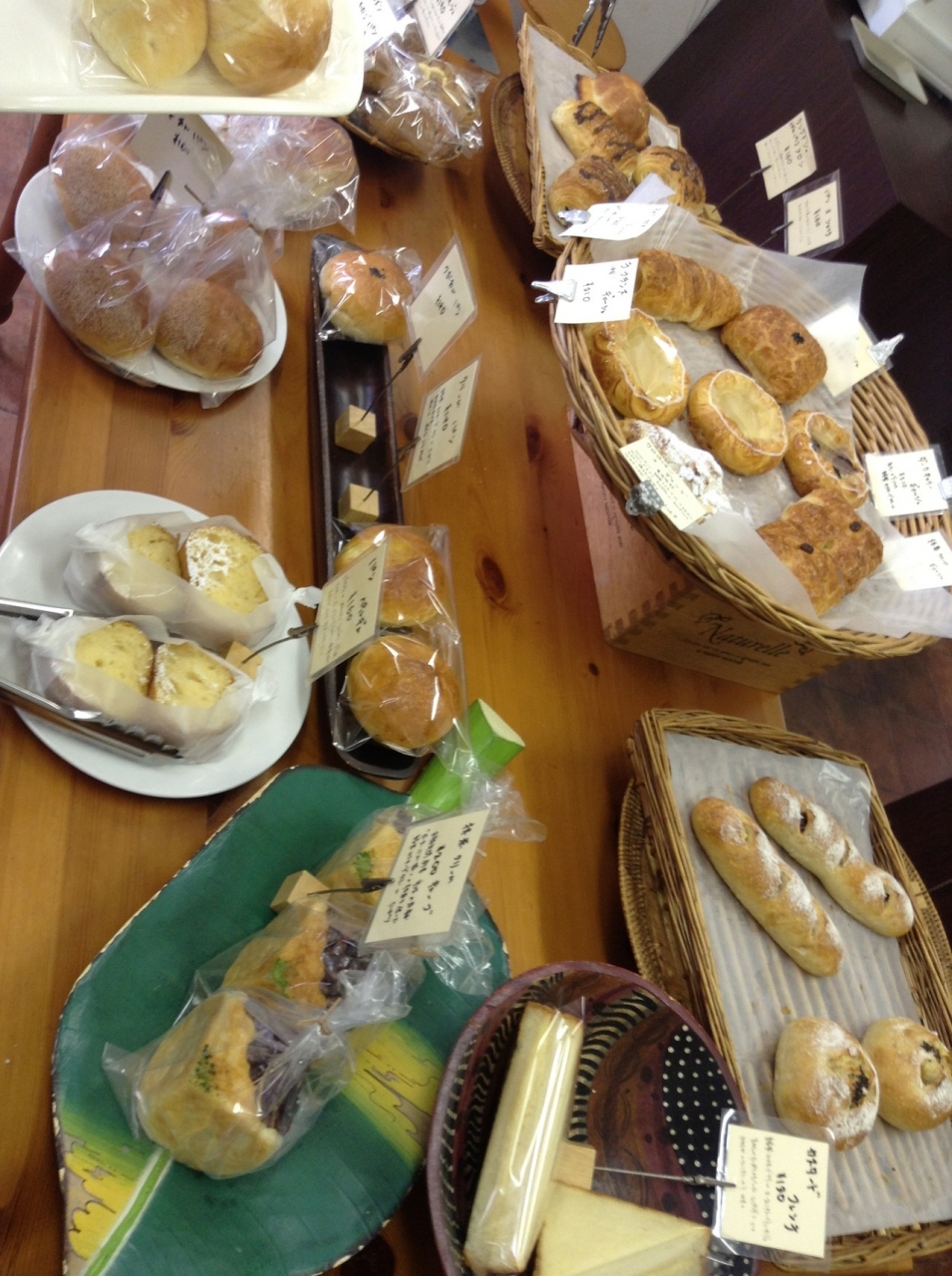 さつまいも入り山型パン、アンチョビとオリーブ入りパン、ソーセージ入りパン、フレンチトースト、ロールパンで1000円ぐらい。