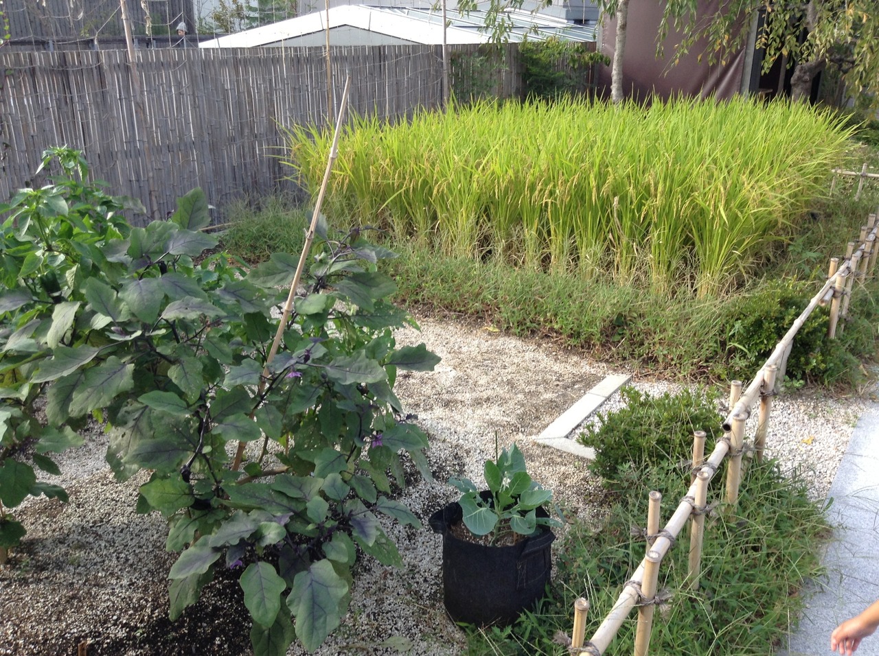 仲見世を抜けると稲や野菜を植えた屋上菜園もあり、その先に小さな社殿があります。