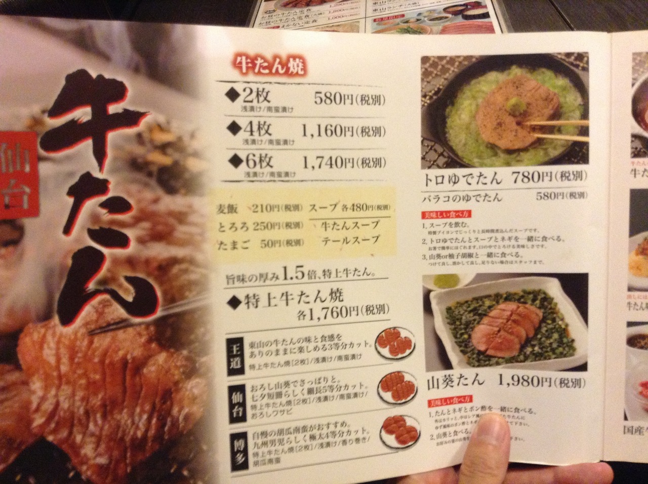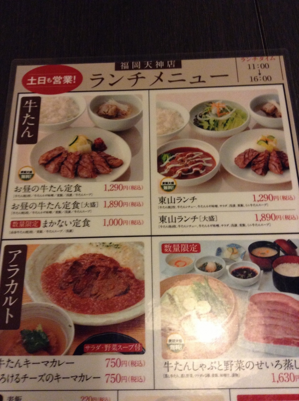 西鉄天神駅とビオロの間の道に面した地下にある仙台名物の牛たんのお店です。