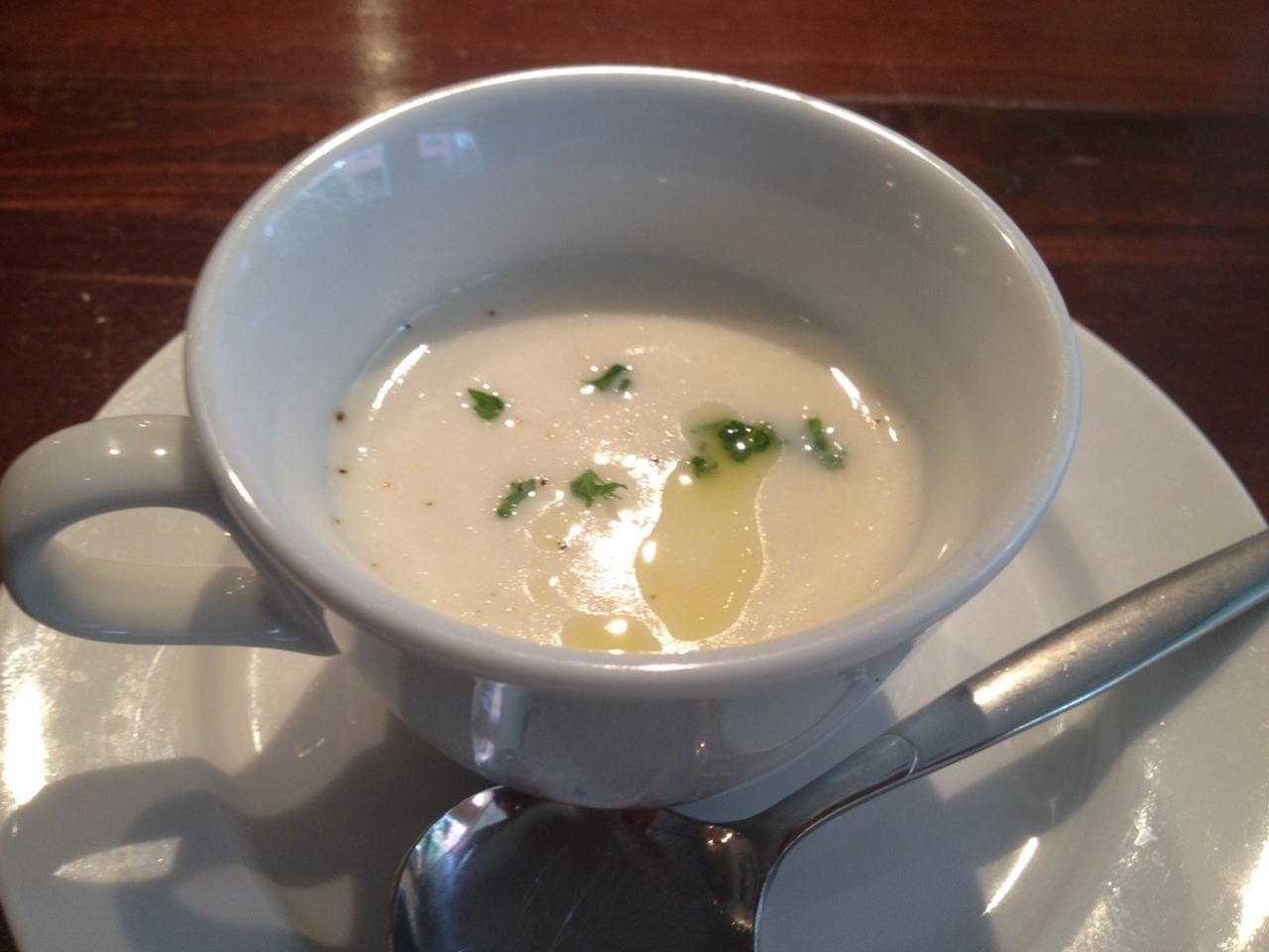スープ、サラダ、メイン、デザート、ドリンク、パンの内容でした。
