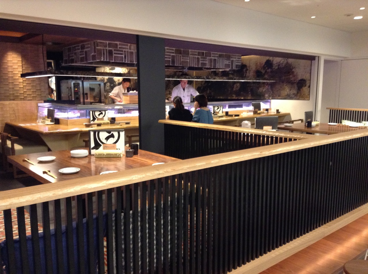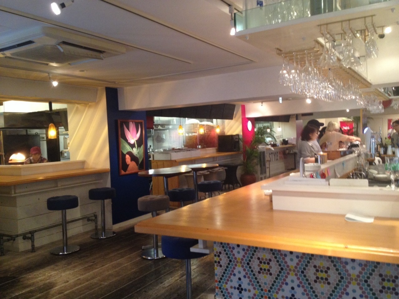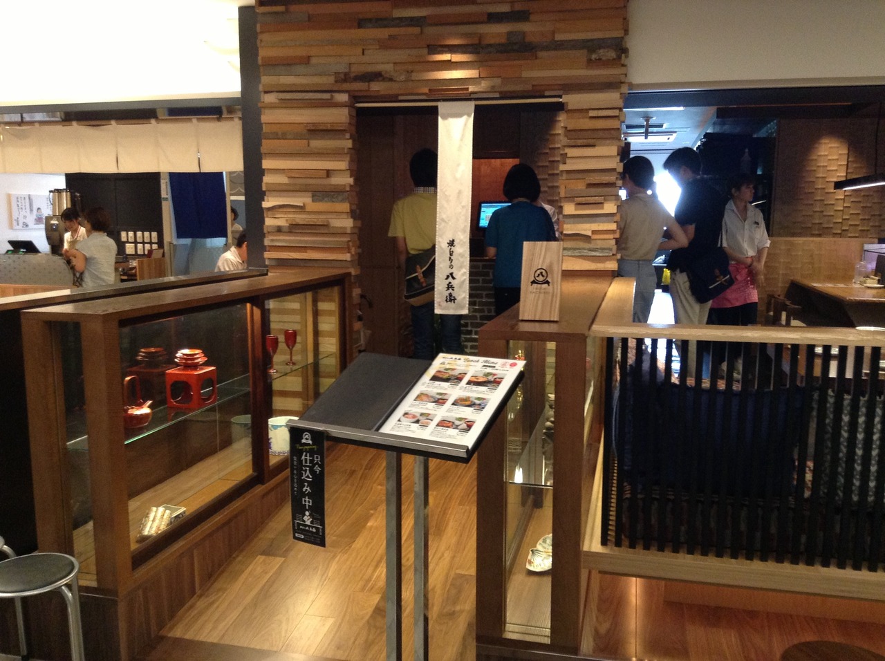座敷はなく、テーブル、カウンターのみの小型店ですが、プラリバの向かいという場所柄お昼どきは混んでいました。