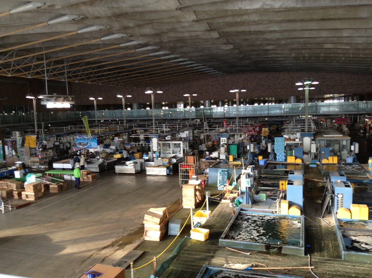 市場は市場ですが、すっかり観光地化して一般客が多く訪れます。夕方行ったのでお店も、魚の販売も当然ながらほとんど終わってましたが、一階は市場らしい雰囲気を楽しめます。