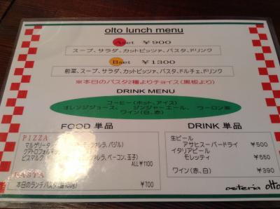 マルゲリータ1100円と、Aセット900円、Bセット1300円を注文。サラダ、スープ、パスタ、カットピッツァ、コーヒーの内容で、Bセットは更に前菜にサーモンマリネ、ドルチェが付きます。
