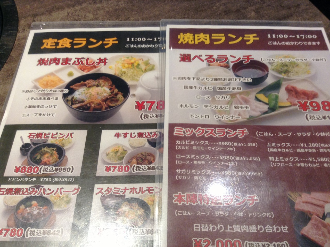 夜は食べ放題ですが、今回は、ランチで利用。焼肉が二種類選べるセットで、1058円でした。
