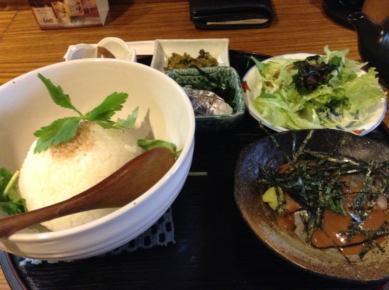 今回は、ランチで利用。コロッケ定食、唐揚げ定食など揚げ物系のなか鯛茶漬け650円を注文。