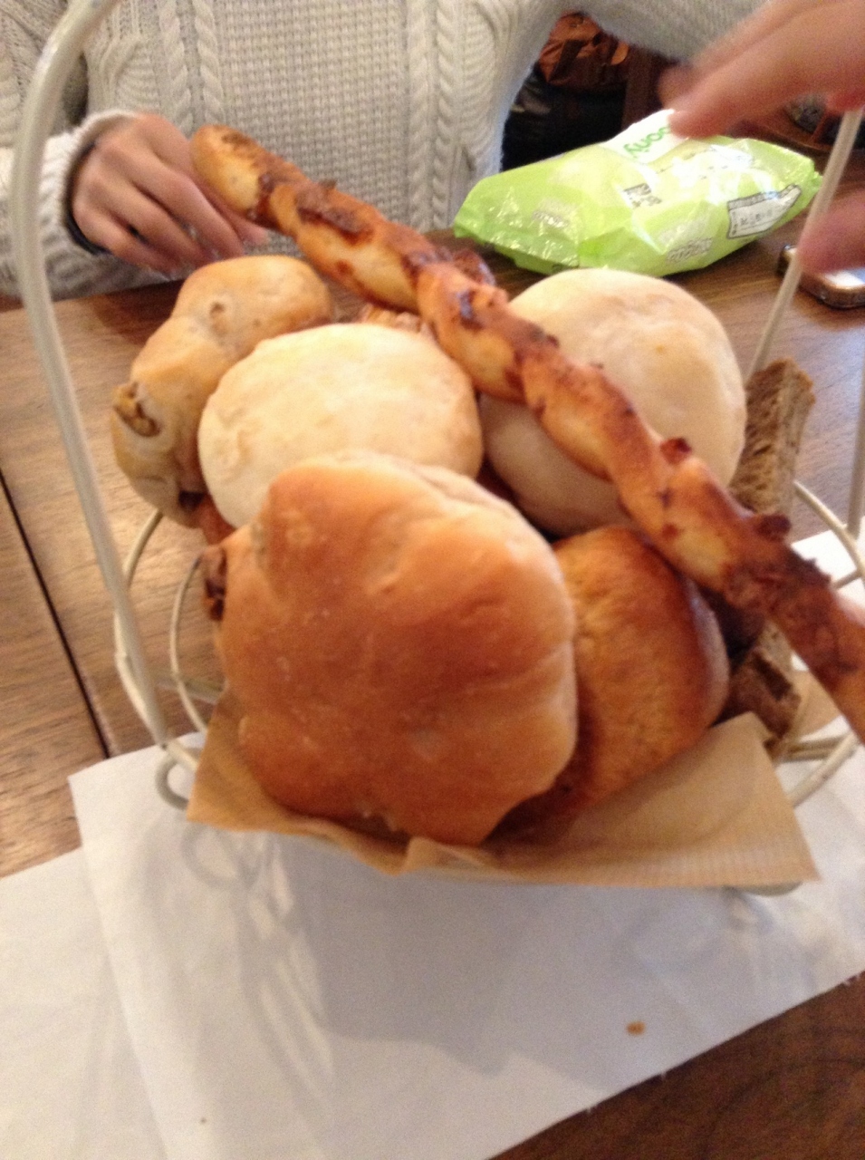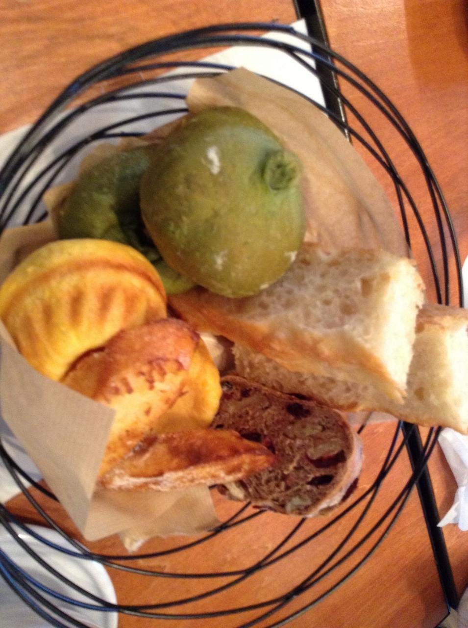 パンは、ソフト白パン、紅茶パン、フレンチトースト風のパン、胡桃入りパンが出てきました。