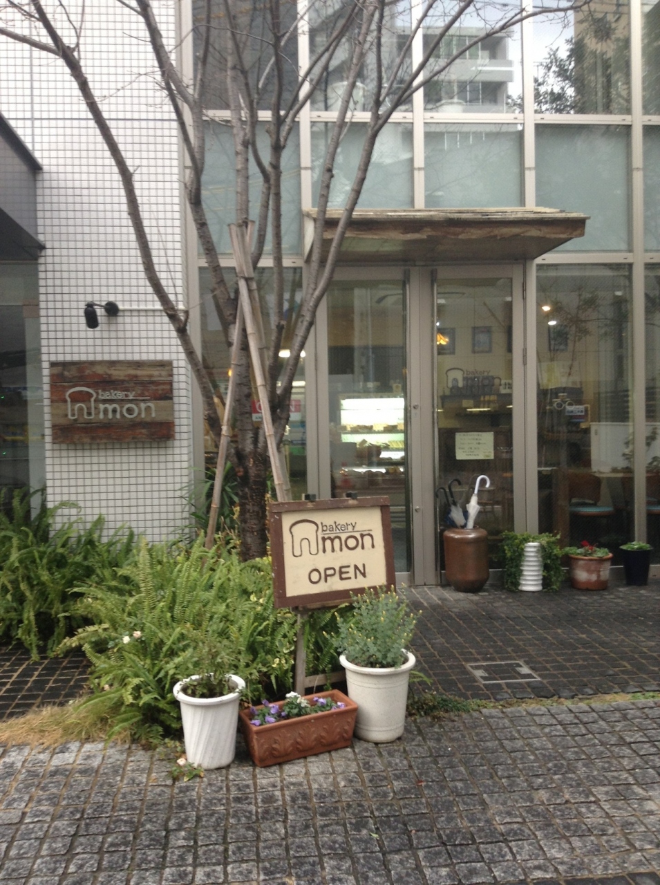 MON(もん)は、赤坂と大濠公園の中間ぐらいの大手門バス停近く明治通りから一本入ったビルの一階にあるパン屋さんです。