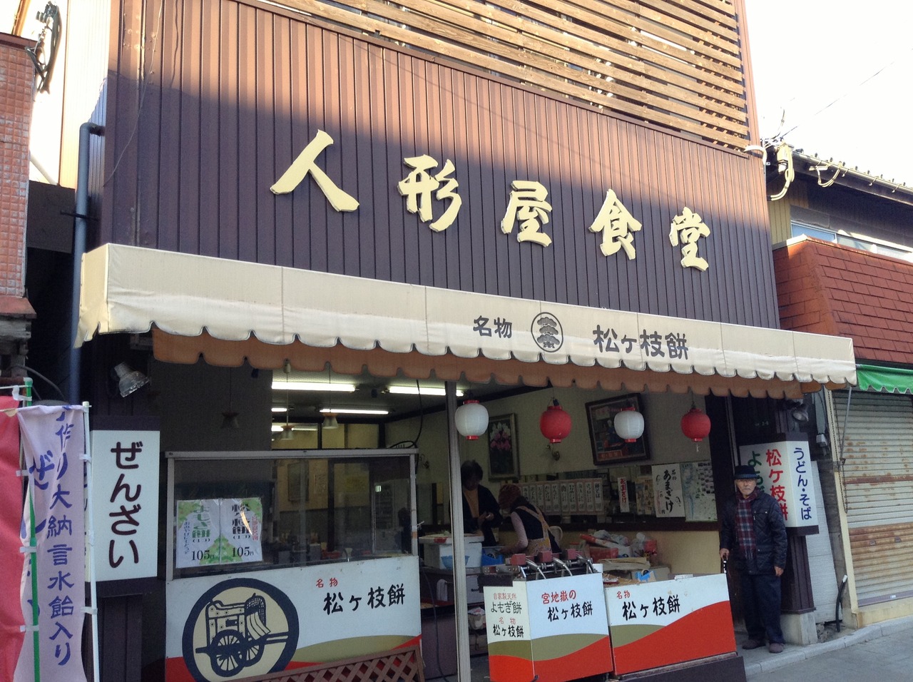 人形屋食堂は、宮地嶽神社の参道にある食堂です。参道にある他のお店と同じで、松が枝餅の販売が主力のようです。
