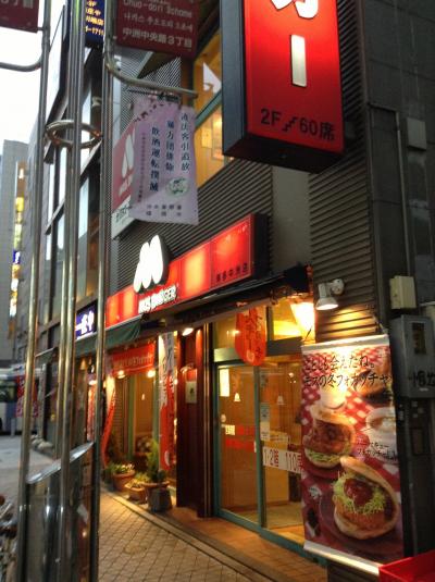 モスバーガー博多中洲店は、中洲川端駅の中洲側出口を出て、中洲の飲食街に入ってすぐの所にあります。庄屋の隣、ミスタードーナツの向かいです。