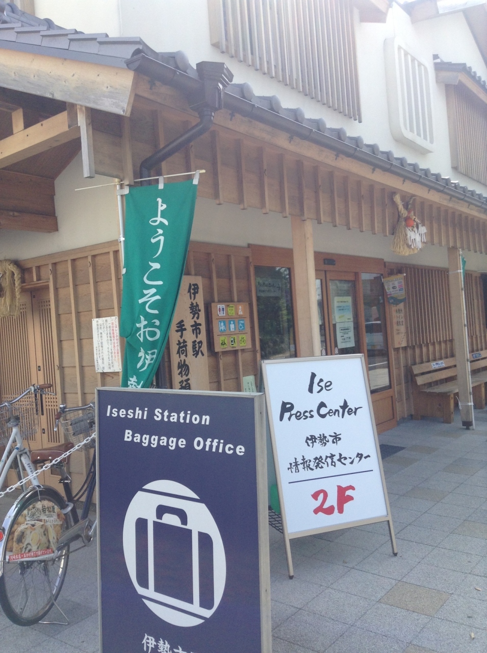 JR伊勢市駅にある手荷物預かり所。駅の改札をでて、左に30秒ほど歩くと建物があります。有人対応で1日500円で預かってもらえます。コインロッカーも改札右手にあります。コインロッカーは、サイズによっては400円で預けられるので、小型の荷物はコインロッカーで良いでしょう。