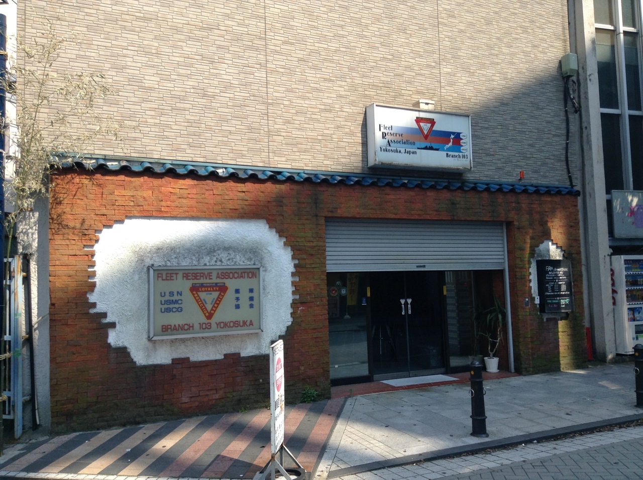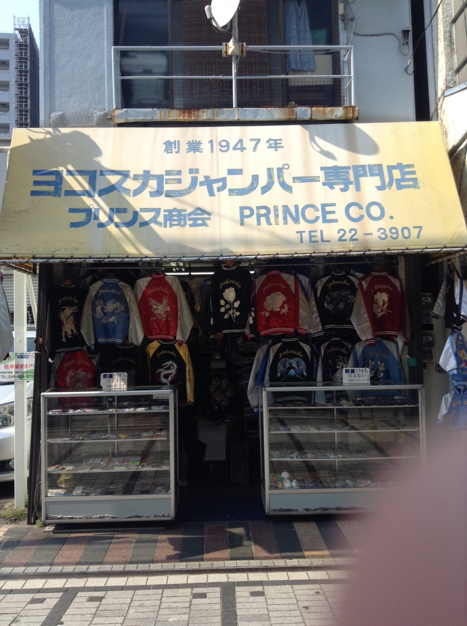 海軍の軍港時代は通りにドブ川が流れていて、その上を板がひいてあったことからドブ板通りと呼ばれています。戦後は米軍の歓楽街だったので、軍関係者向けのお土産ものや飲食店があります。昼だったので、ネオンはなかったので雰囲気は夜のほうがあるんでしょうが、軍港のらしい通りでした。