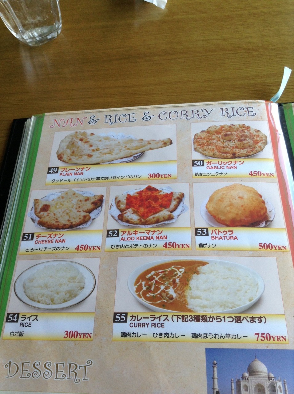 ライス、ナンが300円を始め単品注文はチョット高めの印象。