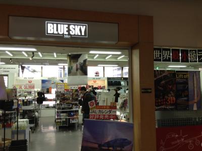 ブルースカイは、ジャルとその関連会社が運営する空港内の物販店です。ブルースカイといいながらロゴは赤色です。