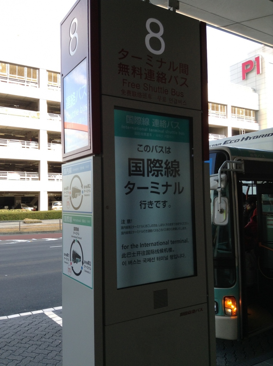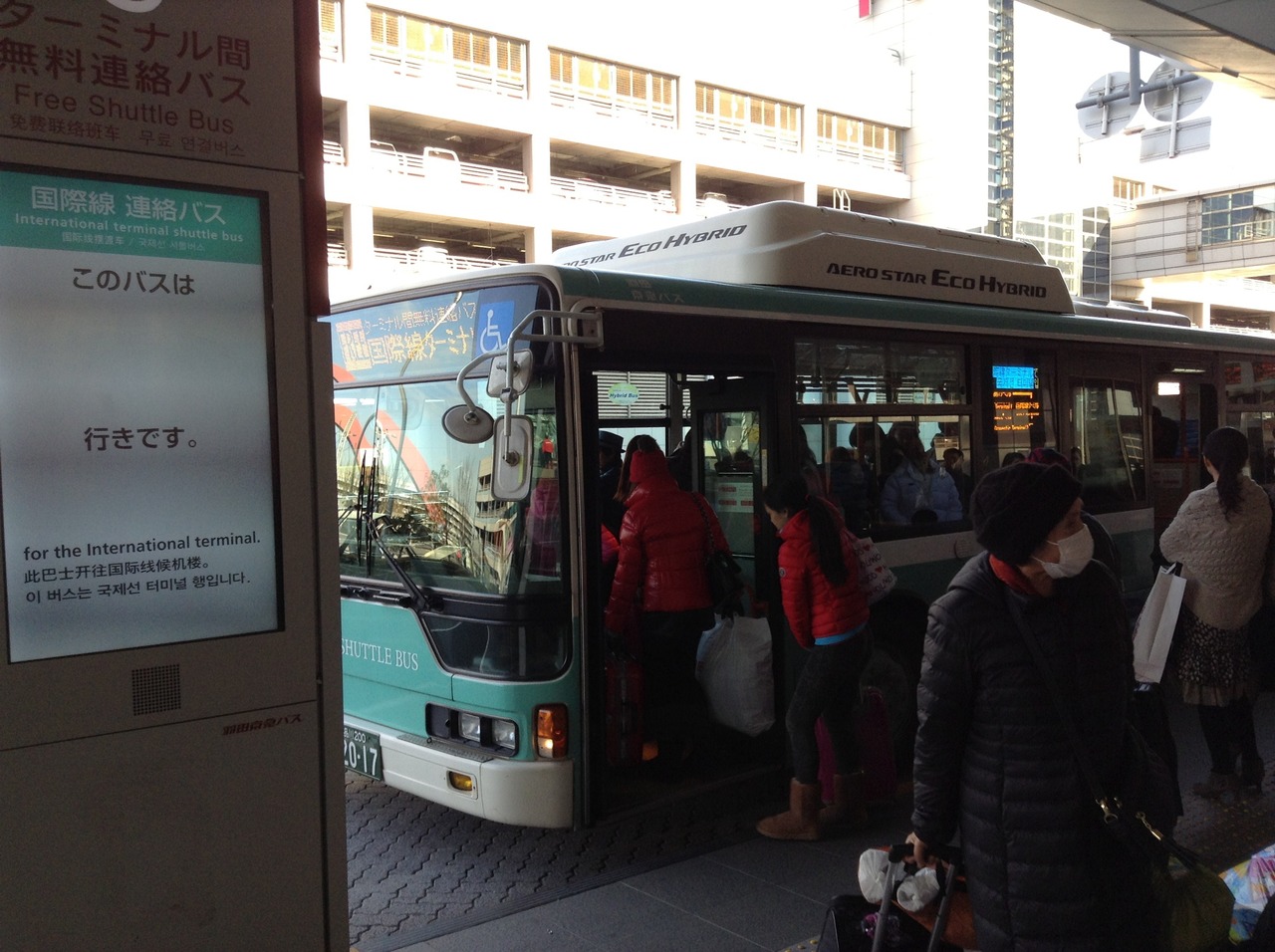国際線ターミナル、第一ターミナル、第二ターミナルを巡回するバスは、第一ターミナルの場合、一階の8番乗り場から出ています。