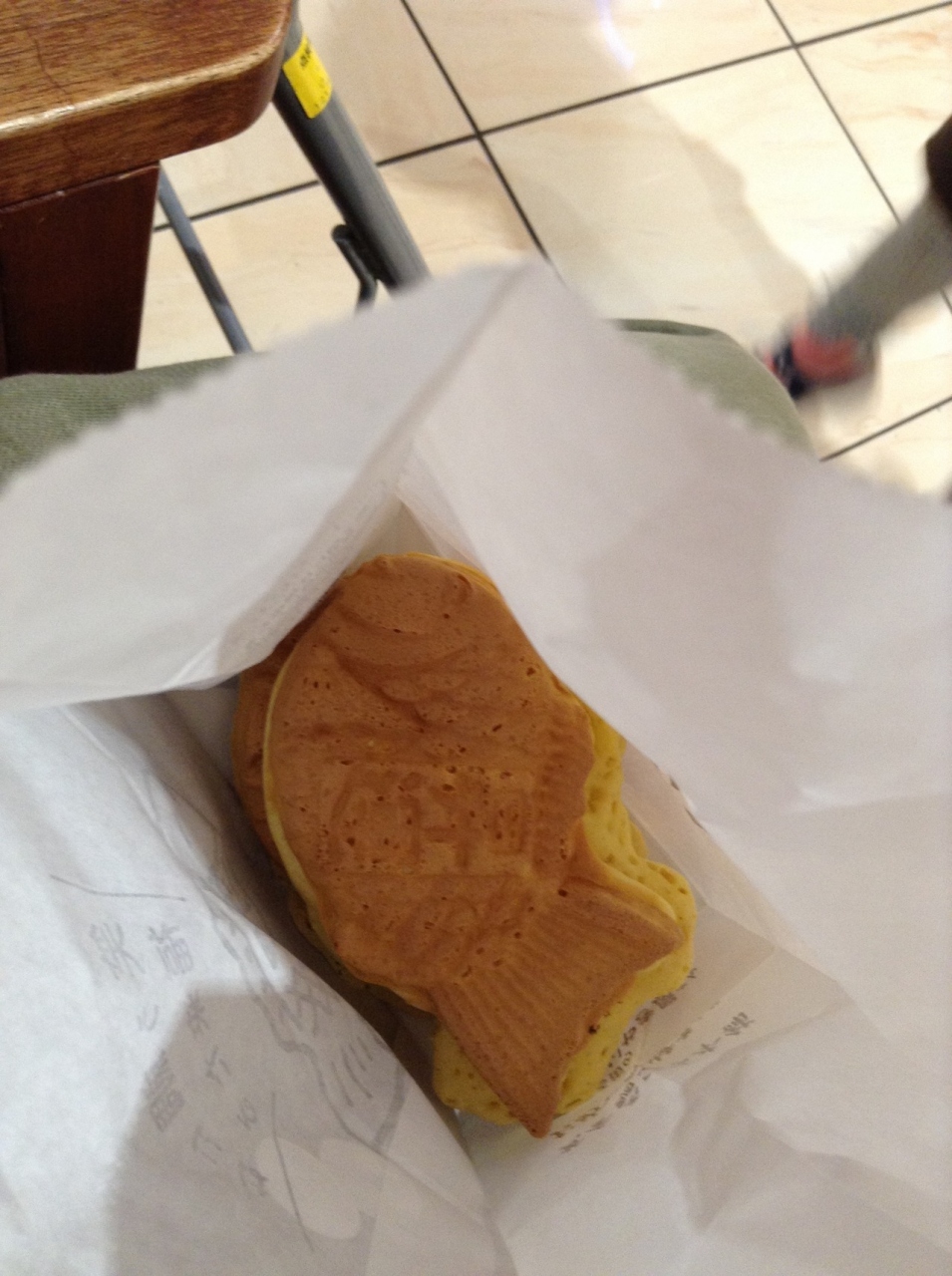 粒あん、カスタード、抹茶あん、お好み焼き風の鯛焼きがあります。値段は、粒あんで130円です。甘くて美味しいですが、甘すぎず冬は最高のお茶菓子です。- 旅行時期