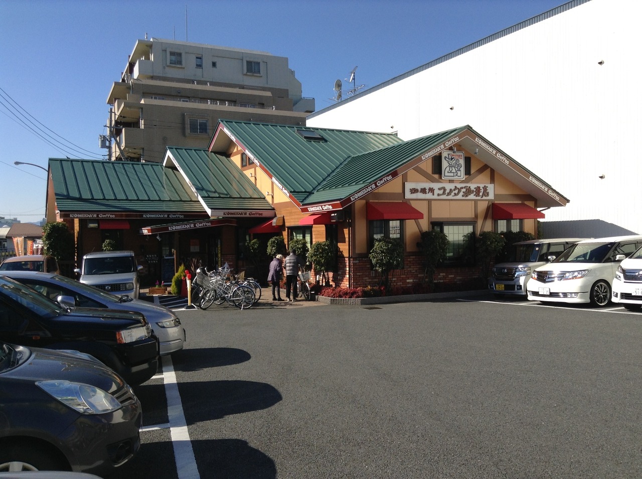 東急つきみ野駅からヤマダ電機方向へ1分ほど歩いた駅前にあります。駐車場ありますが、人気店でいつも混んでいます。名古屋の喫茶文化を受け継ぐチェーンですが、この手の店が減っていたのでリタイア組を取り込み人気です。