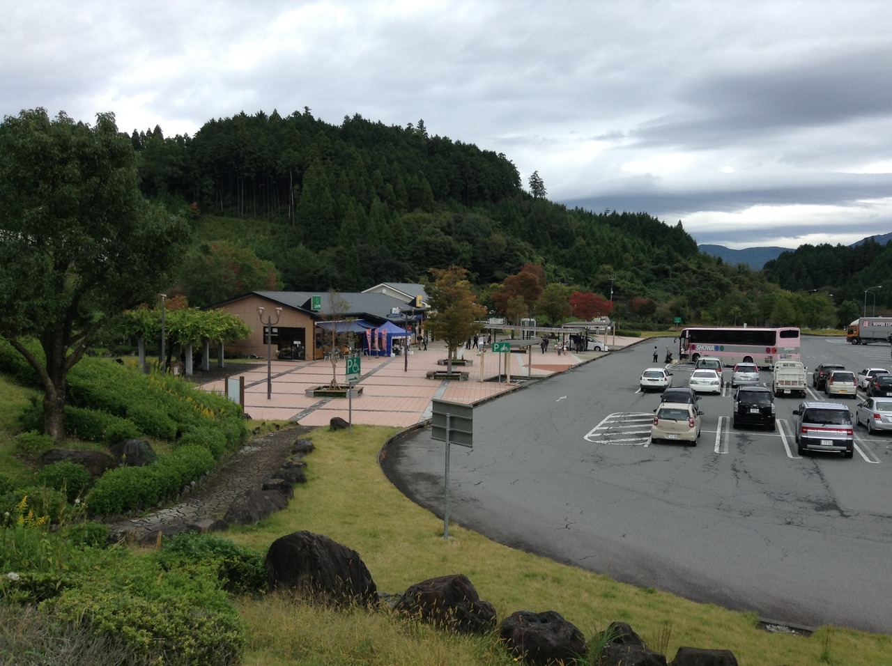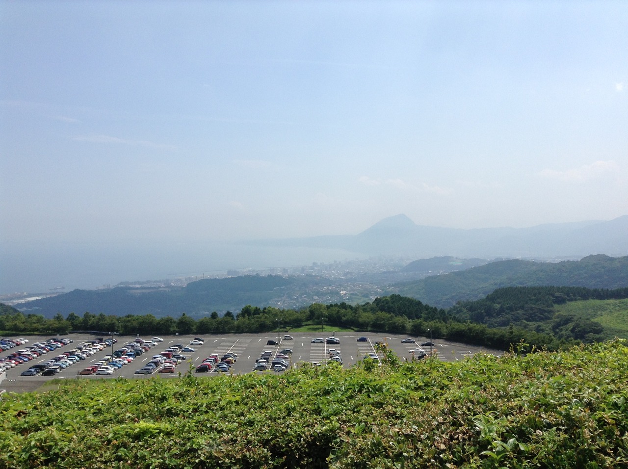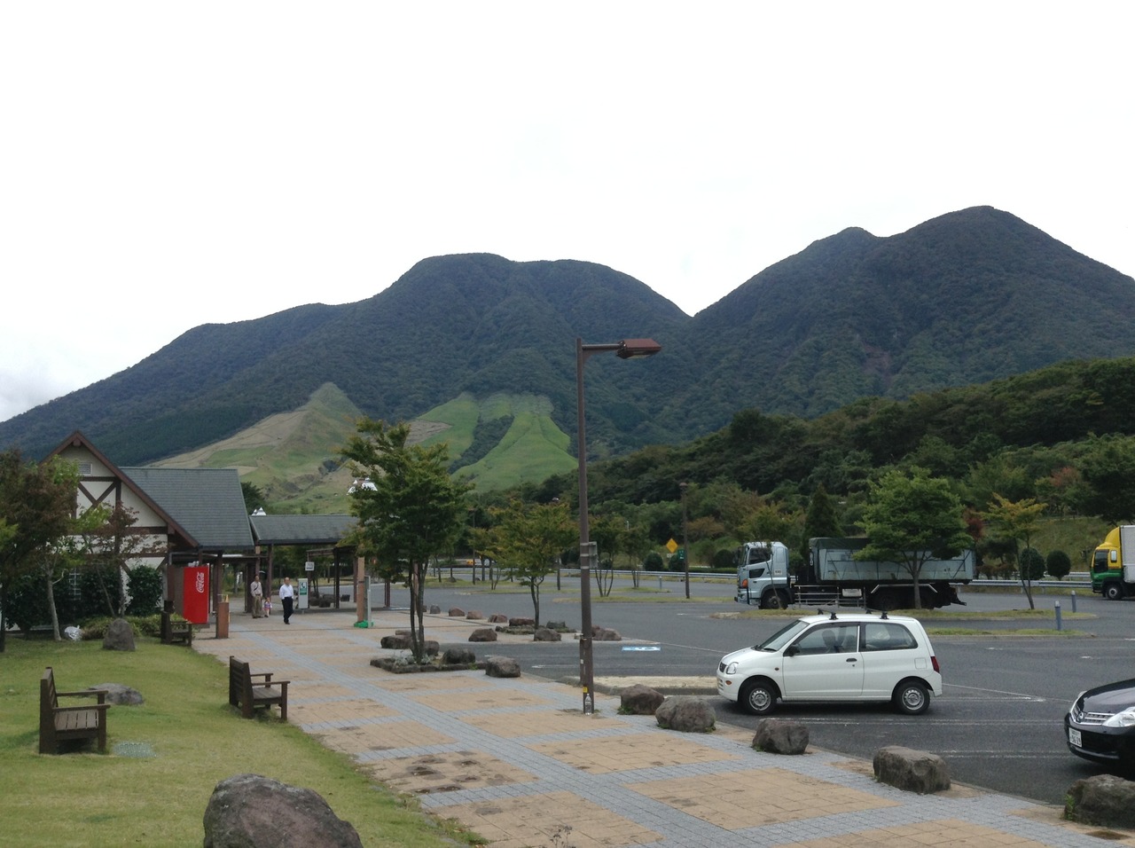 由布パーキングエリアは、湯布院インターから少し走った由布岳の麓にあるパーキングエリアです。トイレと自動販売機しかない小さなパーキングエリアですが、湯布院にいる時とは反対側から由布岳が見られます。