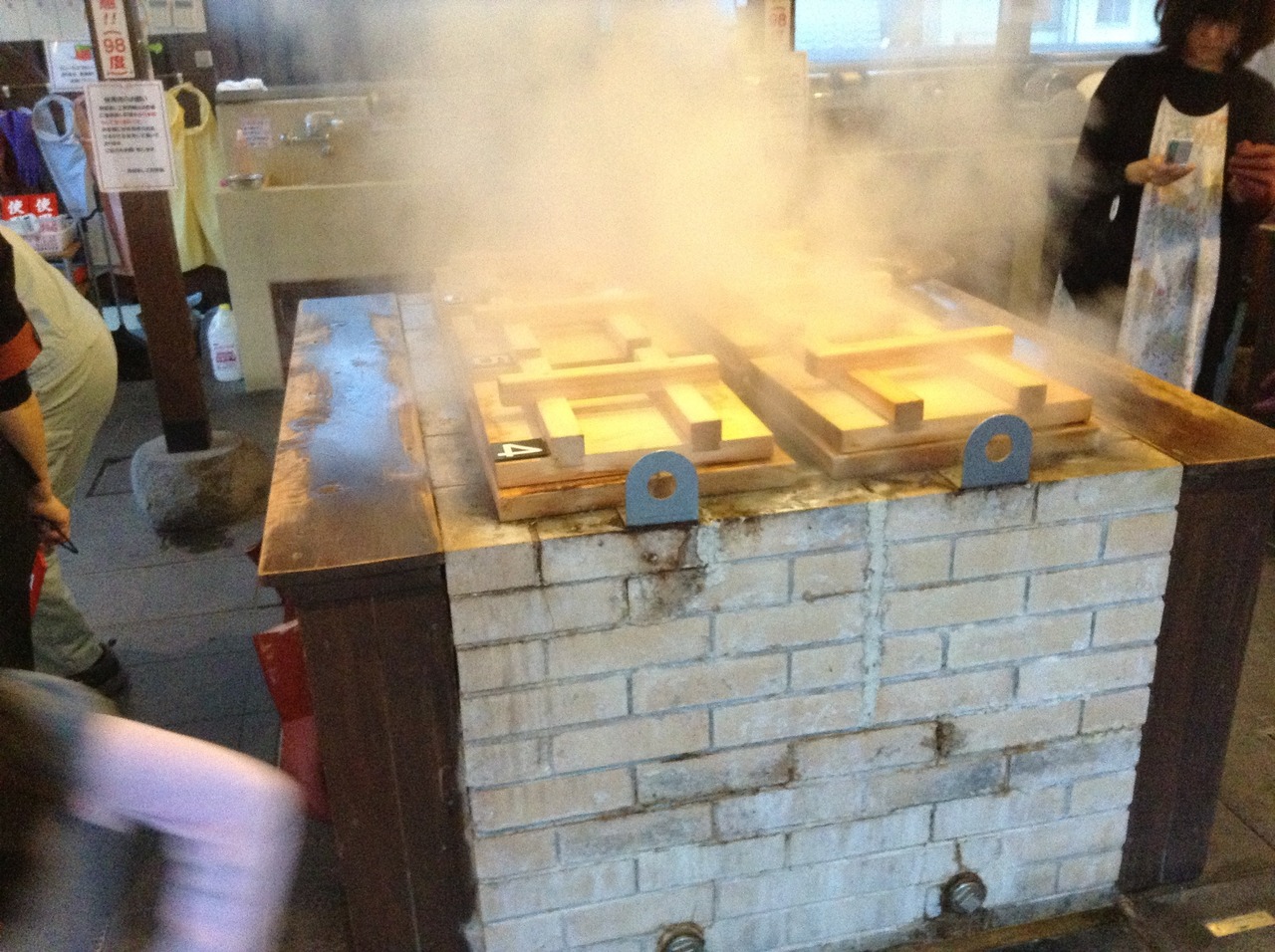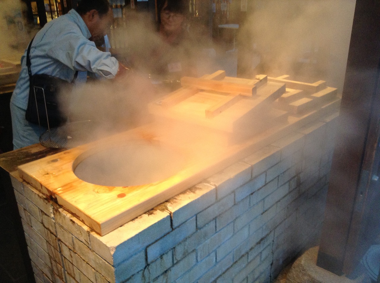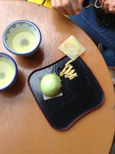 店頭に抹茶まんじゅう100円が湯気を上げて蒸かしてあり、ついつい手が伸びます。
