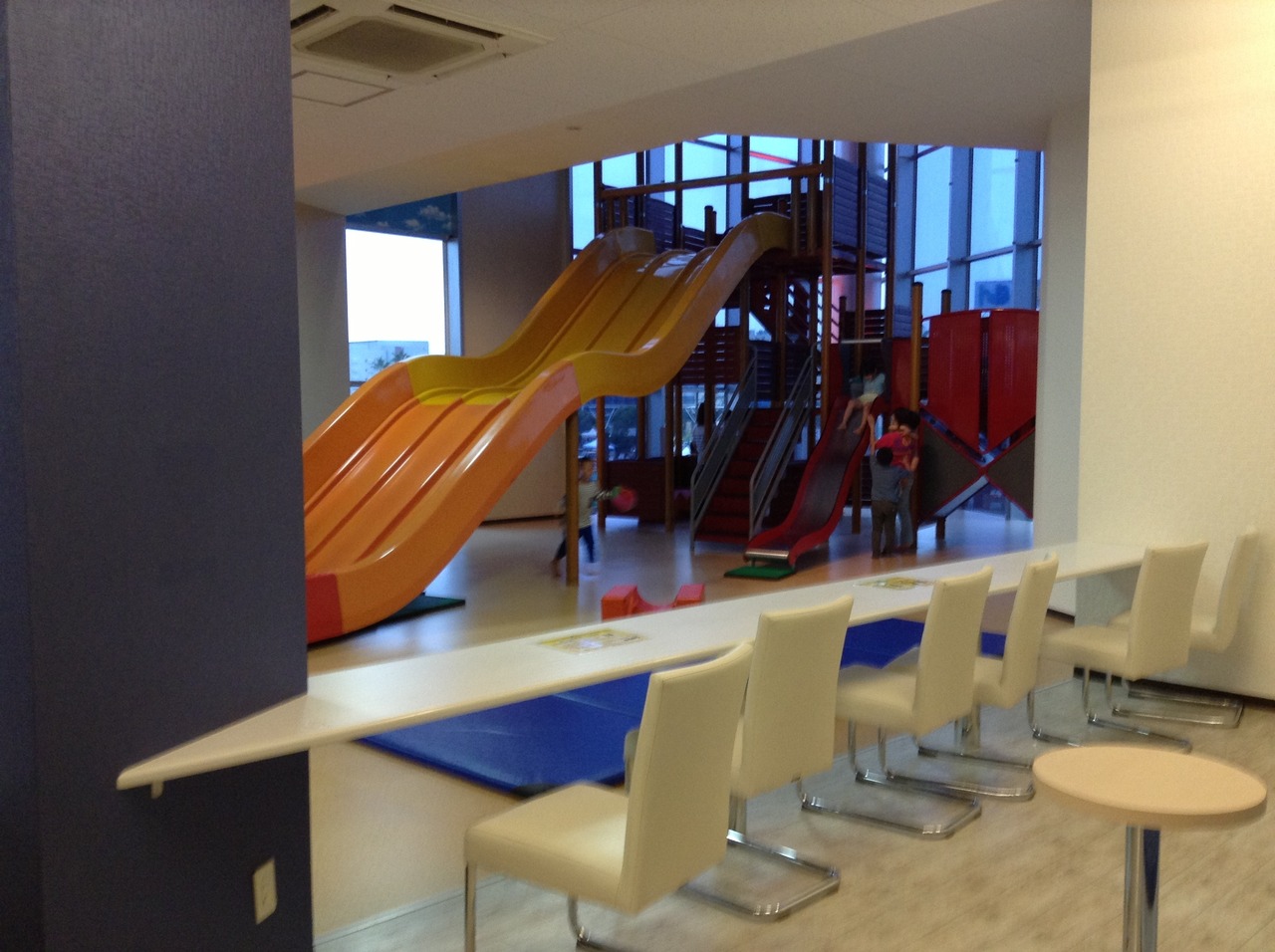 中は、広い吹き抜けで、解放感があり、吹き抜けを取り囲むようにテナントが入っています。