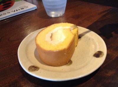 ロールケーキは、厚切りでサイズも大きく食べ応えがあります。カフェオレは、ボール型の器に、二杯分ぐらいの量がなみなみ入っています。