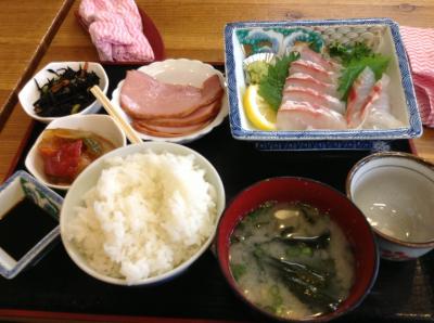 小鉢三品にフライ、焼魚のメイン一品にご飯、味噌汁がついて670円です。メインを刺身にすると980円になります。刺身定食にしたところ、鯛の切り身で、身がしっかりして美味しかったです。980円は高いかなという感想です。- 旅行時期