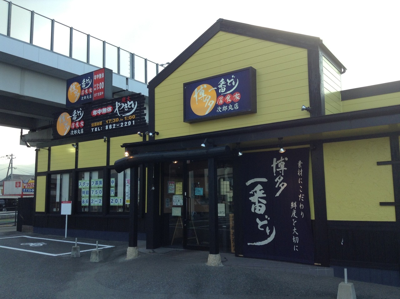 一番どり次郎丸店は、地下鉄次郎丸駅から少し橋本側にあるTSUTAYA、焼肉なべしまと同じ敷地にあります。