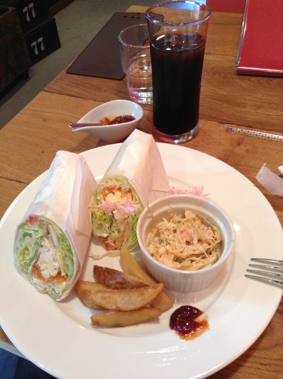 イグニッションスイッチは、最近、博多座の裏手にできたサンドイッチ屋。サーモンのラップサンド780円を注文。オーダーが入ってからの手作りとのことで、注文してから20分経過してからようやく出てきました。カウンター席は、イスの高さが中途半端で、座り心地は悪かったです。味は、まあ普通です。昼休み向きではない感じ。待たせないのもサービスですね。