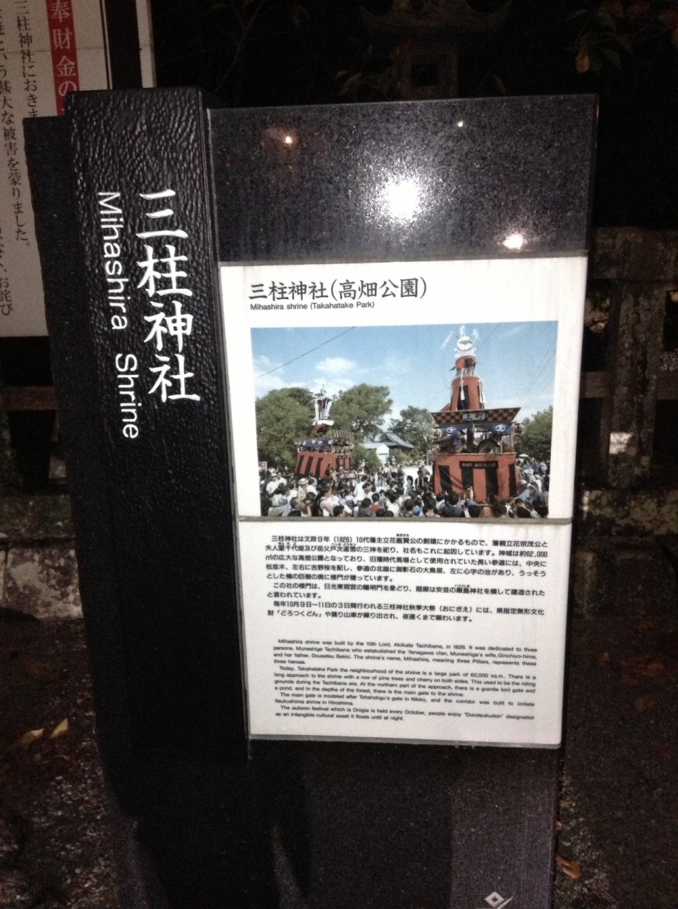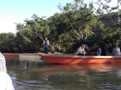 車は、城門観光の券売所の駐車場(無料)に止めて、舟で三柱神社の船着場でいき、帰りはバスで送ってもらえます。