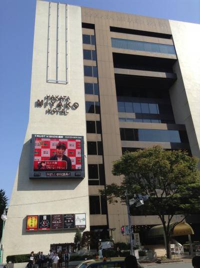 博多駅から筑紫口を出るとロータリーを渡ってすぐの所にあります。転勤前の宿泊で、乳児連れなので、和室を利用しました。7.5畳なので、布団を3つ敷くと一杯で決して広くはないのですが、駅前で便利でした。お風呂もトイレとセパレートで、洗面台も別にあり、狭いながらも工夫がされています。朝食も明るく・広い会場でバイキングで快適でした。決して新しくはないのですが、いいホテルだと思います。