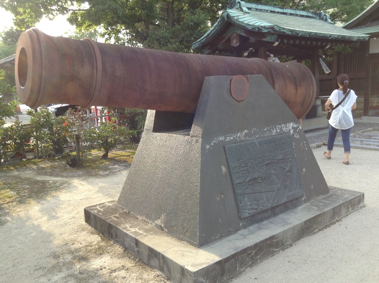 手水のちかにアームストロング砲が展示されており、維新期の鍋島藩を象徴しています。