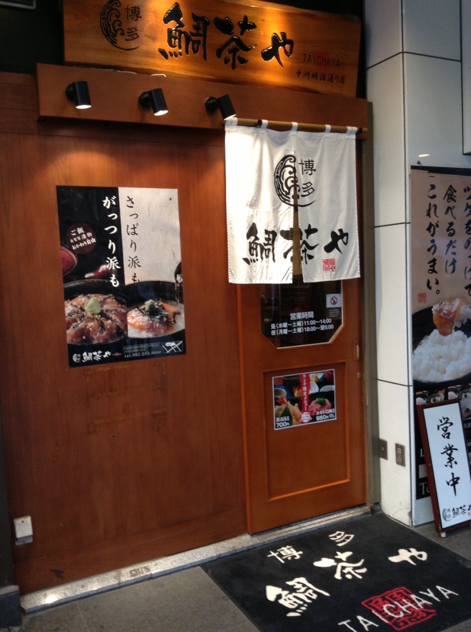 中洲川端駅の中洲側出口を出てすぐのセブンイレブンの隣に、小さい間口のお店があります。店内はカウンターで、入ると先ずは販売機で食券を購入するシステムです。ランチで「鯛茶」980円を注文。