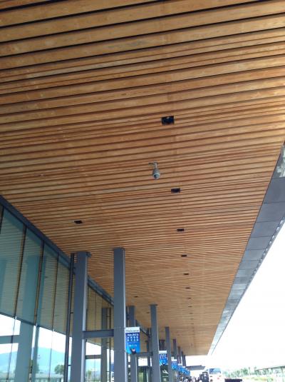 くまもと空港は、木を使ったターミナルの外観が特徴で、落ち着いた雰囲気を出していて、親しみやすい感じがします。