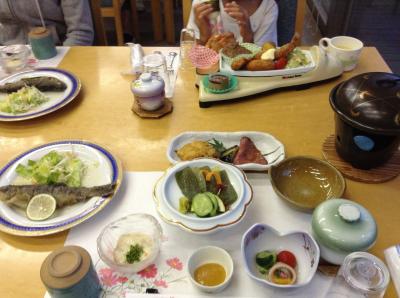夕食も鱒の南蛮、宮崎牛の味噌煮込みをメインに量も十分でした。
