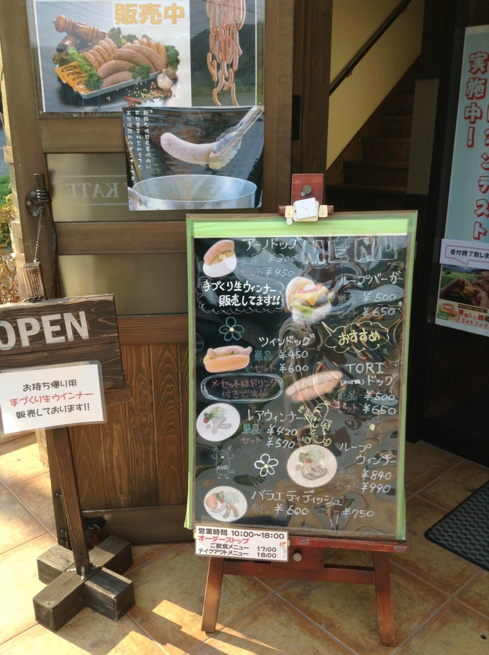 三瀬の直売所まっちゃんの裏手を少し入った所にある南欧風の建物がお店です。ウインナー専門店で、2階でイートインもできます。三瀬のループ橋のように丸く巻いたソーセージを挟んだループバーガーが名物です。