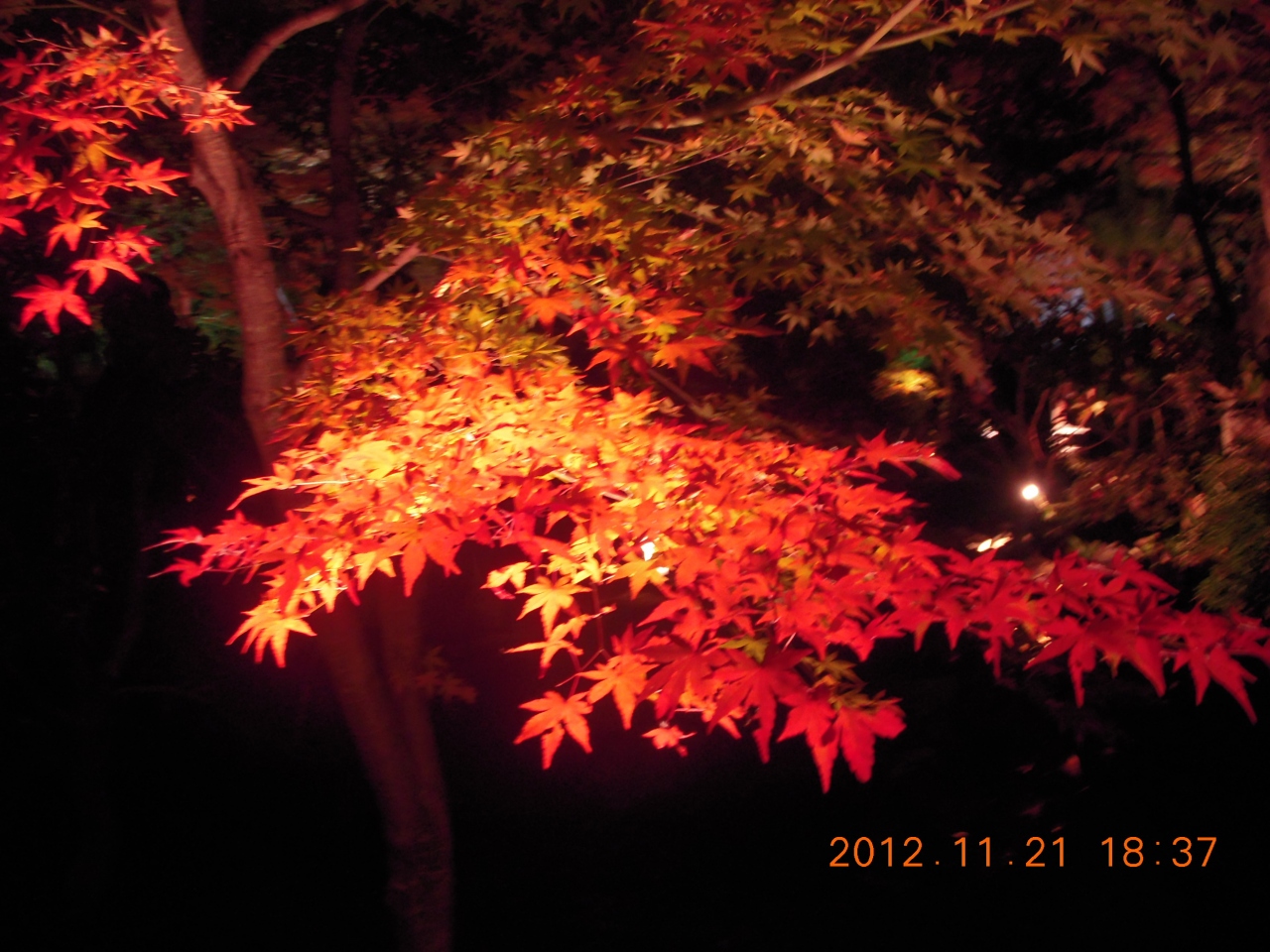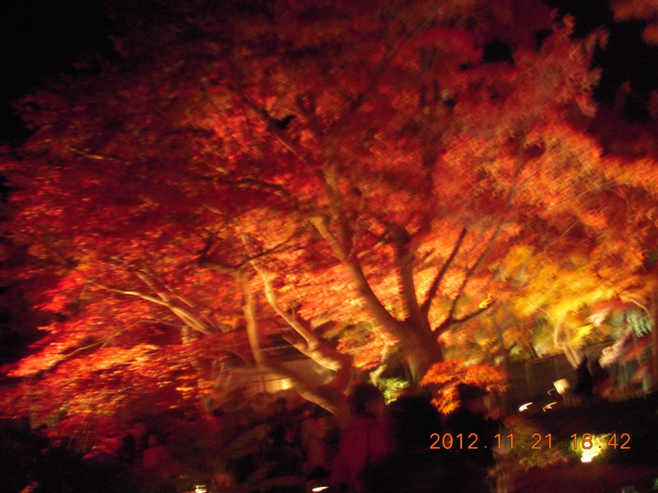 11月に紅葉を見に京都へ行きました。上賀茂神社や天龍寺も行ったのですが、夜間ライトアップが有名なのは、ここ宝厳院です。ライトアップ開始前から拝観の長蛇の列ができており、びっくり。日中の混み具合を見ると仕方ないかもと思いならぶこと20分。それほど大きくない庭ですが、紅葉が見事にライトアップされていました。この時期だけなので値打ちがあると思います。
