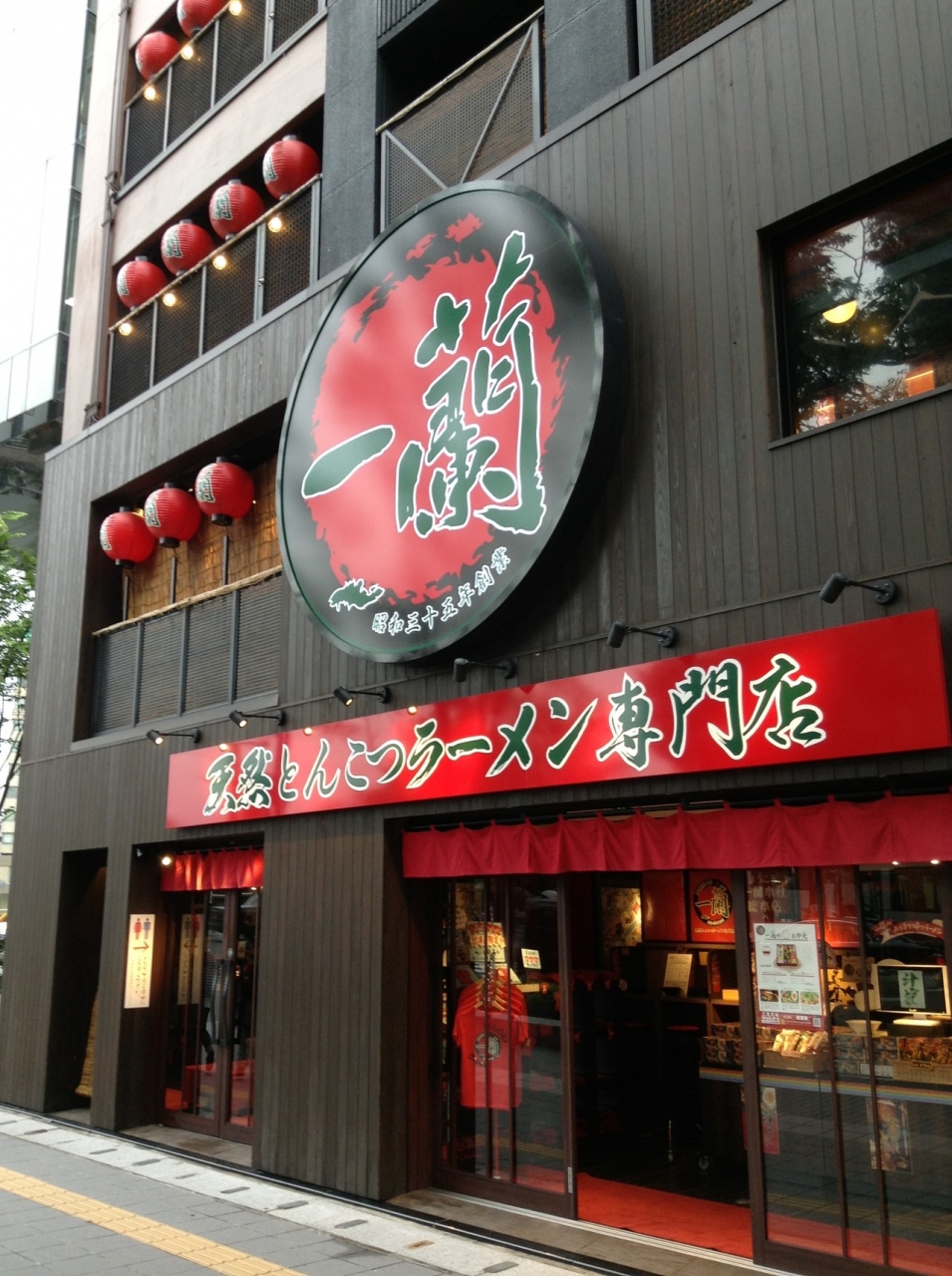 中洲川端の駅前にある博多を代表するラーメン店の総本店です。去年改装して、一階はアンテナショップ、二階はラーメン店になっています。タイトルに書きましたが、一蘭の特徴は味集中カウンターで、客席の間に仕切り板があり、ラーメン以外は視界に入らないようになった状態で食べます。ラーメンはオーソドックスなトンコツで美味しいのですが、印象に残るのは、カウンターです。