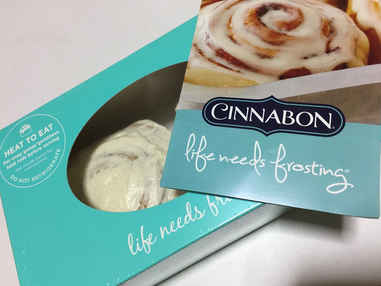 初シナボンしてみました。イートインコーナーもあるけれど、小スペースで落ち着かないため、テイクアウトして、おうちで食べました。