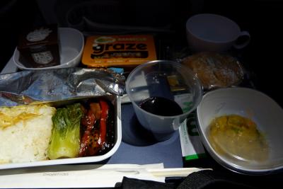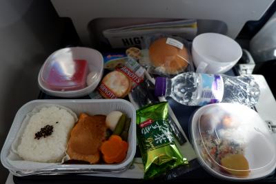就寝時間にもCAさんが頻繁にジュースや水を持って周っていてくれたお陰で乾燥知らず。帰国便の夜中に起きてる人だけ貰えたアイスチョコバーがちょっと嬉しかった(笑)