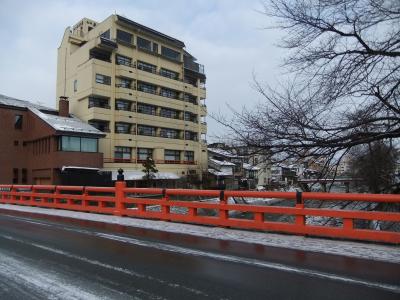 川側の部屋に泊まりました。夜は中橋や陣屋がライトアップされててとても綺麗です。
