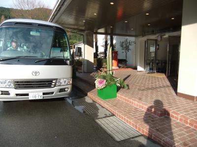 宿の送迎バスは路線バスが終了後の16:40と18時頃に駅から出ます。