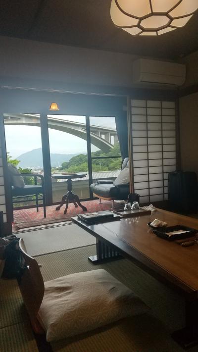 玄関でお香の香りと落ち着いたスタッフに迎えられ、通された部屋の窓からは別府湾まで見渡せました。