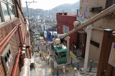 巨大な長崎とも例えられる、坂の街・釜山にあるモノレールです。傾斜地に住むお年寄りや体の不自由な人の生活改善のために作られたもので、運賃無料。オープン型の2人乗りゴンドラが行ったり来たりしています。
