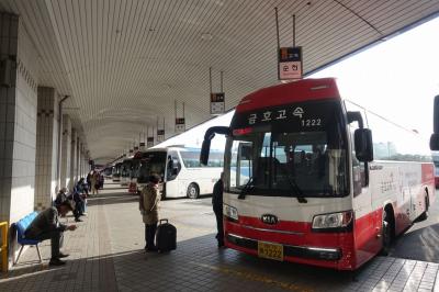 釜山を代表するバスターミナル。屋根付き通路で地下鉄の駅と直結していて、便利です。ただ1号線の北端に位置していて、市内への移動にはそれなりに時間がかかります。