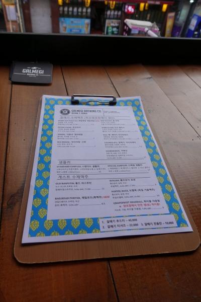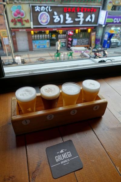 ラガー、IPA、アンバーエールなどなど各種呑み比べOK。4種のサンプラーは15,000ウォンです。