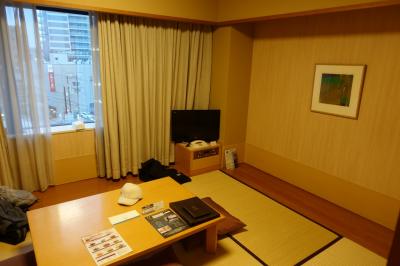 泊まった和室はオーソドックスであり、でもコテコテしていない、シティホテルらしい和室でした。窓を明ければ、駅前が一望。行き交う車が眺められて、我が子も楽しそうでした。