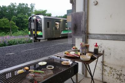 函館本線・比羅夫駅舎内にある「駅の宿」。今回、2度目の宿泊です。駅のホームでバーベキュー。夜は物音ひとつしない静かな山の中。夢の中に回送列車の音を聞き、始発列車で目覚める。ここだけの朝を迎えられます。