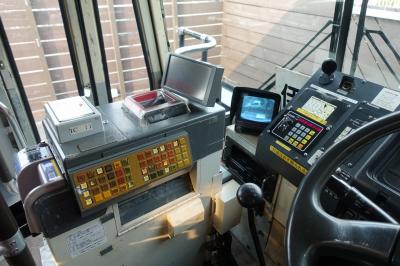 行き先表示器や運賃表示器の電源を入れることができて、運転士気分を一晩こころゆくまで楽しめます。運転席まわりは複雑で、路線バス運転士さんの大変さも実感!?